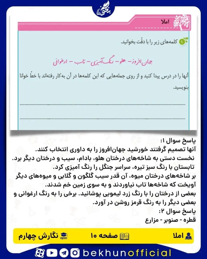 جواب املا صفحه 10 نگارش چهارم