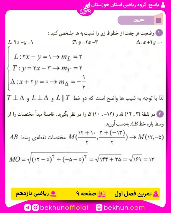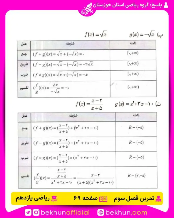 | پاسخ تمرینات ریاضی یازدهم | گروه ریاضی استان خوزستان | دانلود فایل |