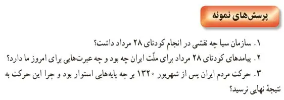 جواب پرسشهای نمونه تاریخ یازدهم درس 25