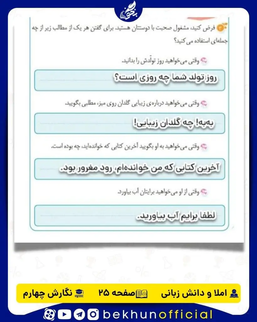 جواب املا و دانش زبانی صفحه 25 نگارش چهارم