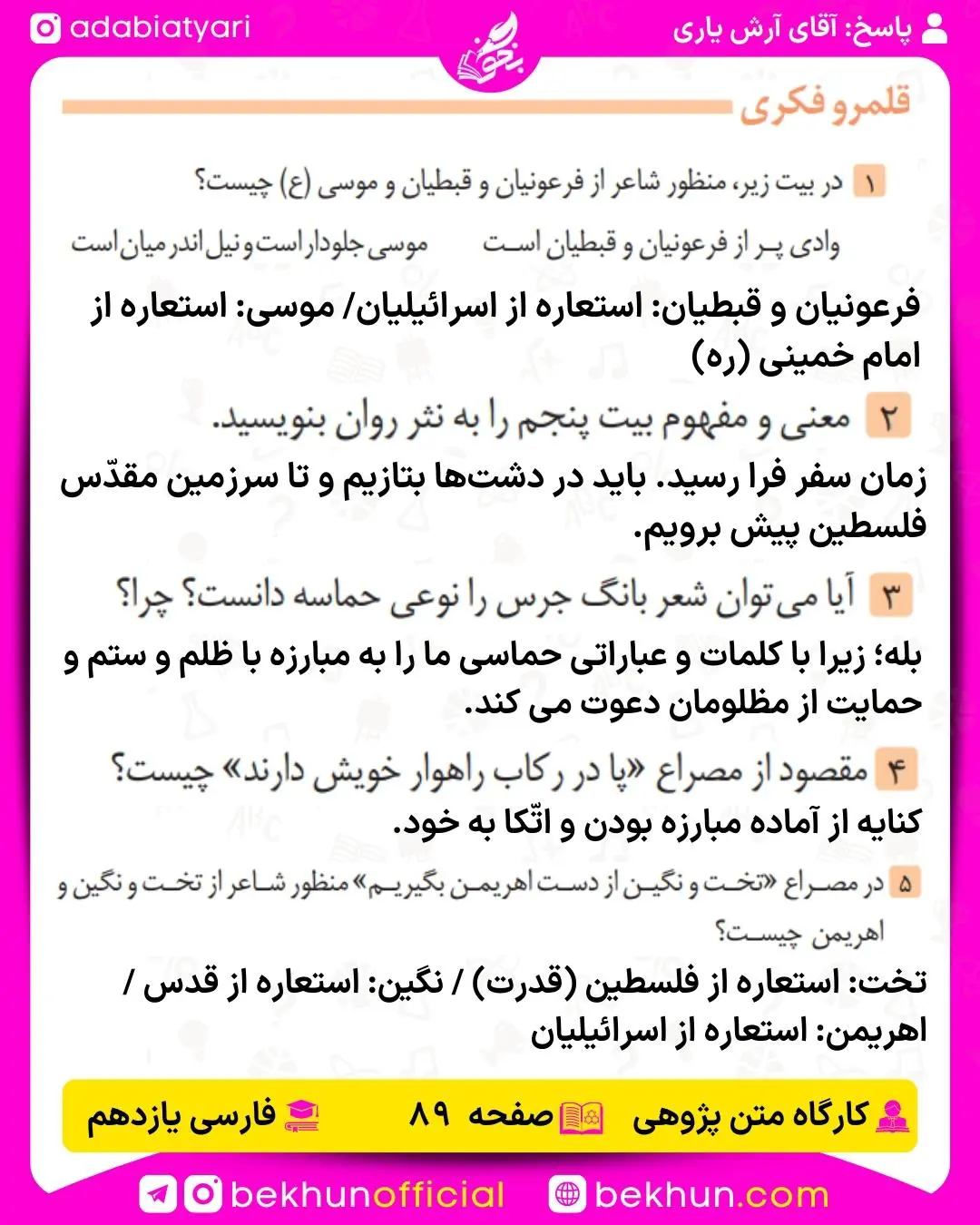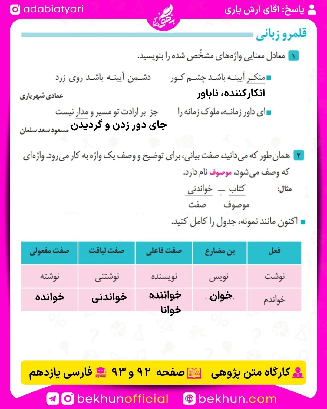 جواب کارگاه متن پژوهی فارسی یازدهم