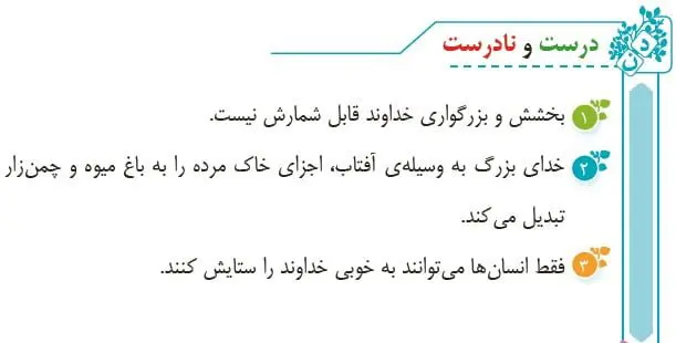 جواب درست و نادرست درس اول فارسی پنجم صفحه ۱۳