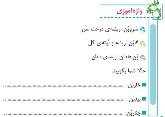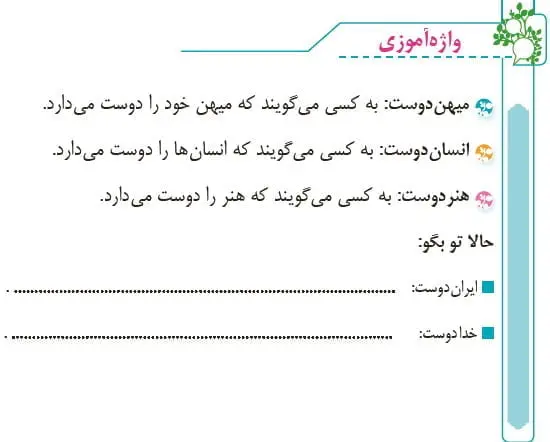 جواب واژه آموزی درس پنجم صفحه 40 فارسی پنجم 1400