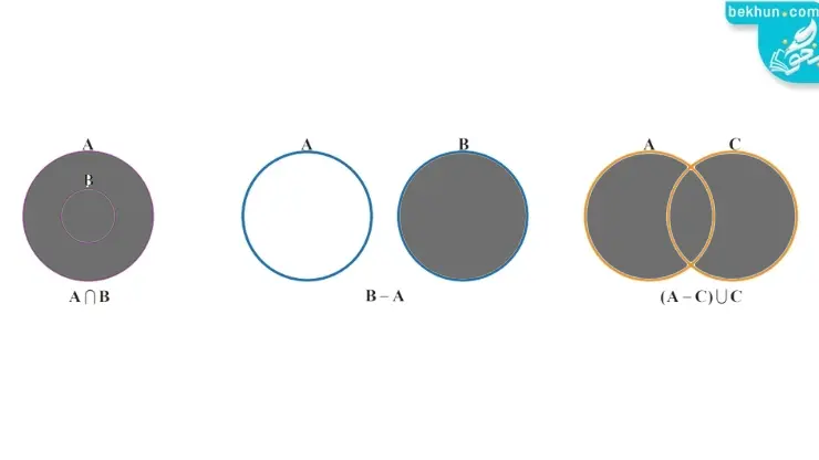 - ه: اجتماع دو مجموعه B-A و A∩B مساوی با مجموعه B است.