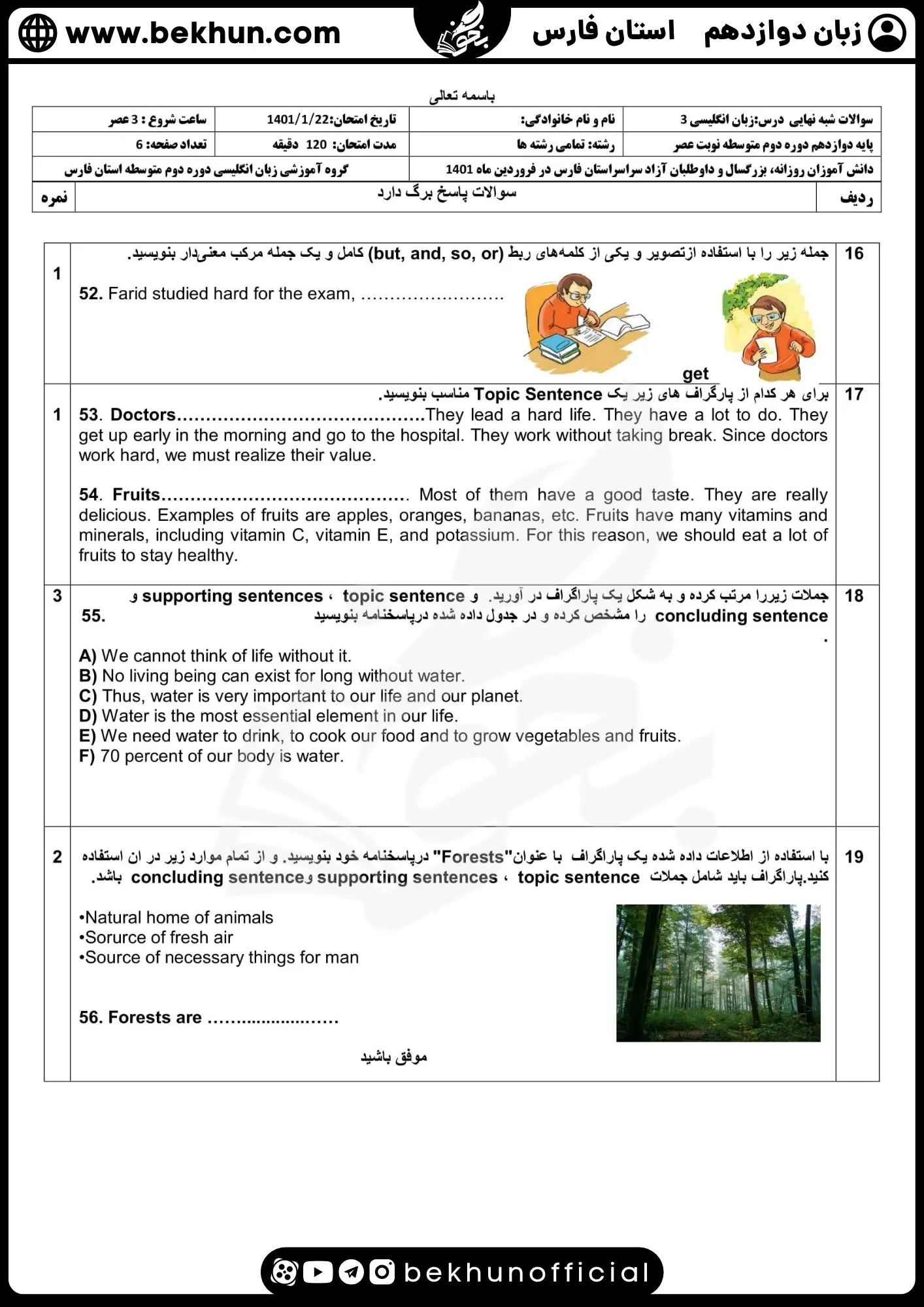 نمونه سوال زبان نهایی دوازدهم با جواب استان خراسان