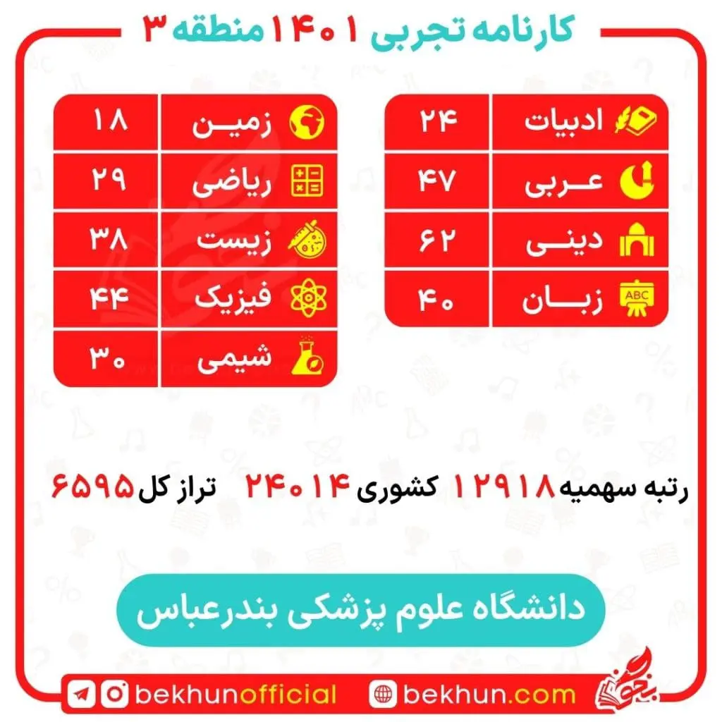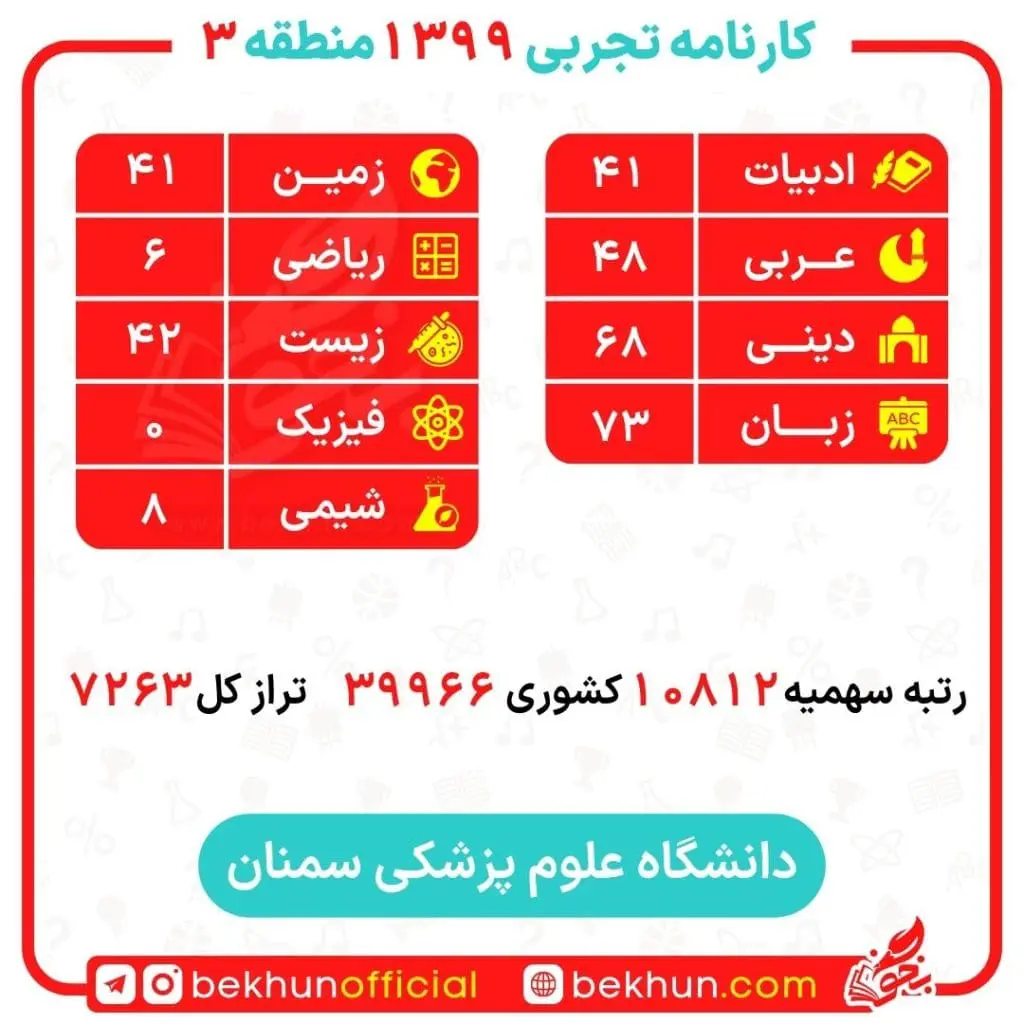دوستان عزیز پیشنهاد میکنم از سایر کارنامههای سایت که مربوط به منطقه 3 است حتما دیدن کنید: